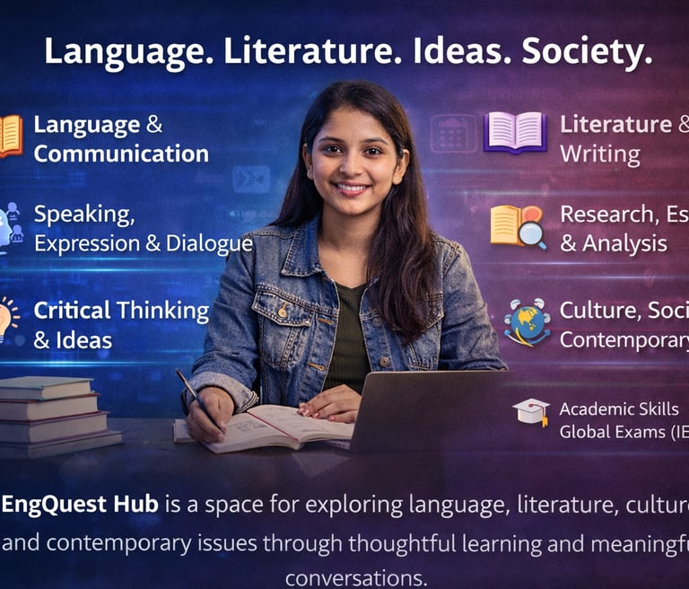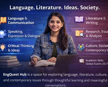 This platform is especially designed for students, aspirants, and individuals who want to improve their ability to express, analyze, and communicate effectively. Whether it is understanding a concept, forming an opinion, or preparing for future opportunities, EngQuest Hub encourages a more aware and thoughtful approach to learning.