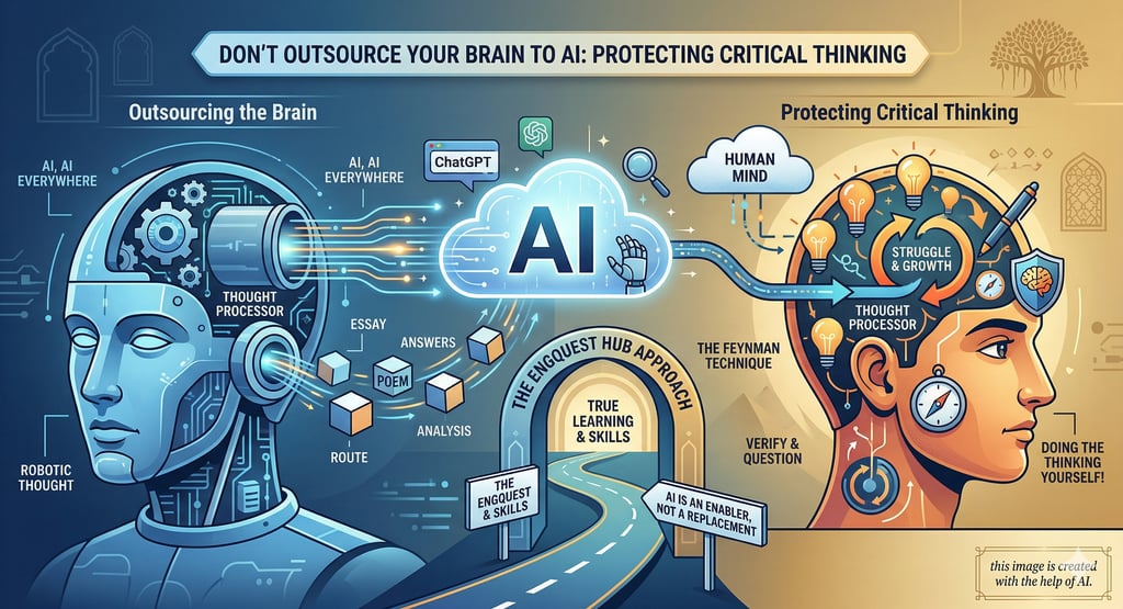 I recently came across an insightful article by Joeanna Fernandes in The Times of India (4th April 2026) titled "Don’t Outsource Your Brain to AI". It resonated deeply with our mission at Engquest Hub, and I wanted to share my perspective on why we must protect our critical thinking in this AI age.